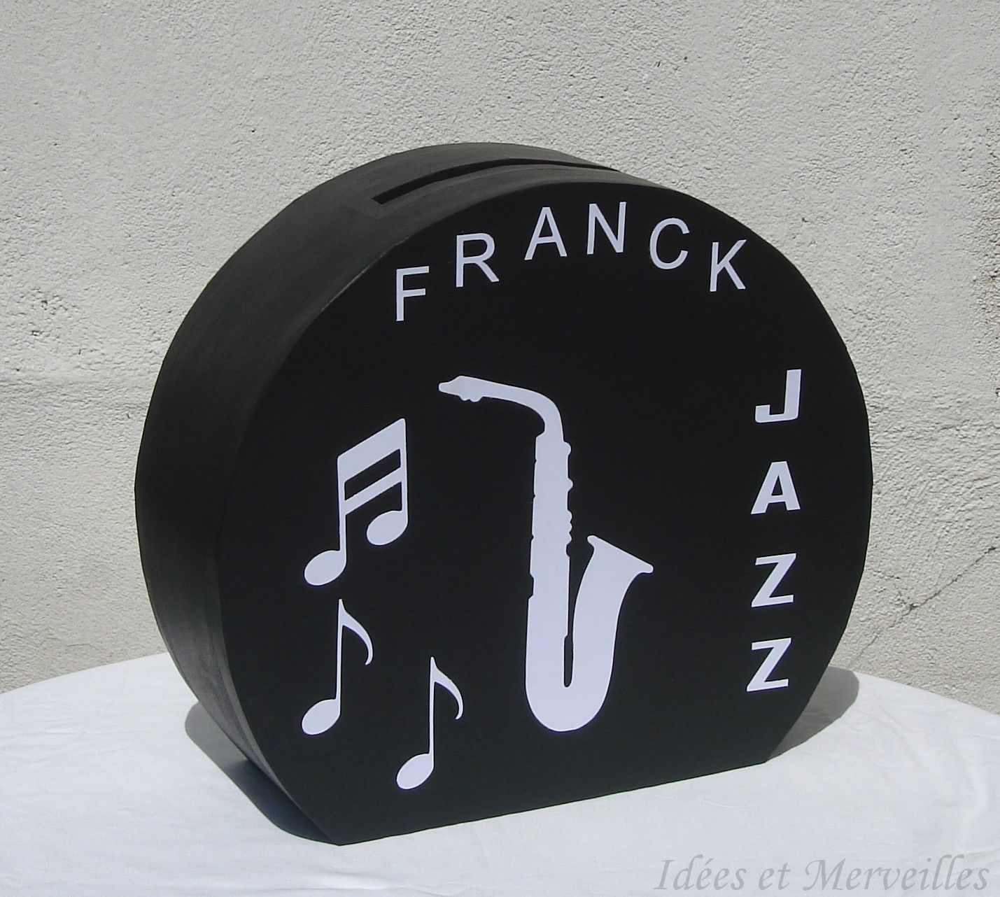Urne thème Picsou – Coffre-fort des économies Apportez une touche ludique et originale à vos événements avec cette urne en carton inspirée de l’univers de Picsou . Conçue sous la forme d’un coffre-fort, elle évoque parfaitement le monde de l’argent, des économies et de la richesse, tout en restant amusante et décorative. Réalisée en carton rigide, cette urne est peinte en gris argent métallisé et ornée de détails dorés rappelant un véritable coffre de banque. Sur la façade, on retrouve Picsou tenant une liasse de billets, accompagné d’un cadran de coffre et d’une poignée décorative. Le prénom ainsi que le chiffre “50” peuvent symboliser un anniversaire, un anniversaire de mariage ey peuvent être personnalisés selon vos souhaits. ✨ Idéale pour : Anniversaire (enfants ou adultes) Anniversaire de 50 ans Mariage ou cagnotte Départ à la retraite Événement à thème argent / fortune 📦 Caractéristiques : Urne en carton solide Décor fait main Thème Picsou / coffre-fort Personnalisable (prénom, âge, chiffre, texte) Fente sur le dessus pour enveloppes et billets La porte devant ne souvre pas, il y a une porte au dos fermée par un loquet Une urne originale qui fera sensation auprès de vos invités tout en servant de décoration unique et mémorable. Me contacter pour toute demande.
