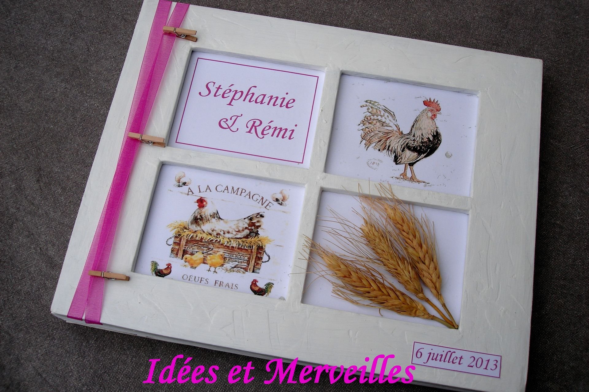 Les éléments principaux souhaités par ma cliente étaient : les coloris blanc et fuchsia et le blé.